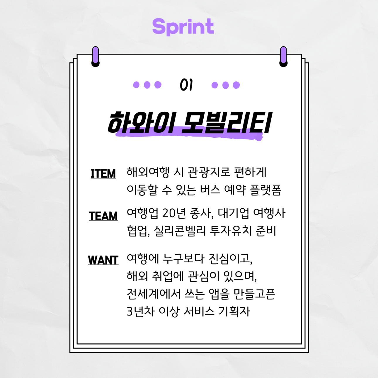 스프린트 담당자의 한마디 강현석 대표님은 17년 이상 여행업 경력 및 오프라인 사업 운영을 통해 글로벌 여행사 네트워크 보유  및 10억 투자유치 경험이 있는 연쇄창업가입니다.